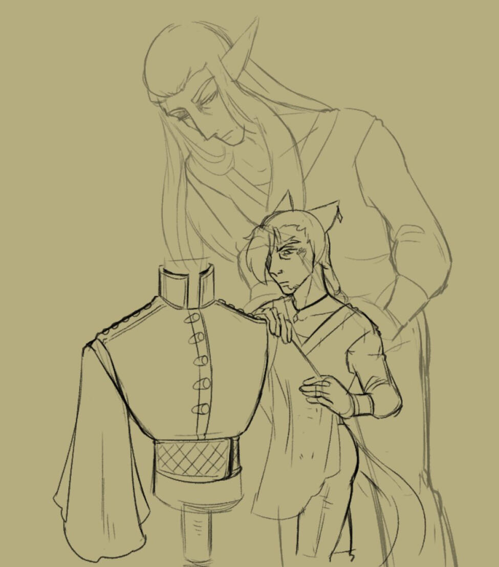 Under construction"Did you always make a habit of joining cults," Deryk asks with a small smile. He leans forward to give Daltheznadof the wine bottle.Taking the bottle with a laugh, Dal sits back against his log. The fire crackles between them. The heat pleasant. "No. No, this was a one time thing. I was young then. Very young. Perhaps 20 summers?"The taste of plum is pleasant on his tongue. His eyes find the sky."Ericas was from there originally. They called themselves the 'Silvnuaruin' or Brotherhood of Songs, if I translated that right. Accepted all types. I needed a place to go, they were welcoming and their pitch was enough to take my bones." Dal taps the wine bottle. "Little figure that would end up literal."Deryk leans on his knees. He listens intently. "What was their pitch?"Dal mulls over the question. What was it… "Ahh. I remember. Through the words we press on the soul, the chime of our strings, our song, our voice do we become so that all shall know the truth. A little superfluous now that I think about it. But it was enough.They taught instruments and the use of magics. There was a great deal of overlap, trying to weave the two. The magics were like that of the Conjury and Thaumaturgy here in the Source. More… aggressive though one could say.”“What made you seek them out?”“Estranged from the family. I was to marry a woman… what was her name. Anyway, I went through the motions of meeting her. The courtship to be expected. But then she was falling for me and I… was not for her so I called it off.” His thumb idly taps the wine bottle. “It would have been good for the family, but I didn’t want it.My mother threw me out. My sister was crying and wouldn’t speak to me. My father was away on business, adultery really. I learned of that much later from letters after their passing. But I was left alone without a gil to my name. I stayed with a friend for a while.Out drinking one night is when I met Ericas. Oh, the life that man exuded. I still remember the smells of fire, of lilies, of sandalwood. His eyes burned so bright. I felt as though I could look into the depths forever and ever listening to him go on and on. He drew me in more than the promise of a family, truth be told. It was the first time I’d felt so-” Dal sighs wistfully. “Enamored with another. I would follow him anywhere had he asked it of me that night.”“This Ericas meant alot to you.” Deryk smiles warmly at the fire.“Oh yes. He was everything. I joined Silvnuaruin that night and was initiated by the morning. I didn’t care what they truly wanted. I had found something to follow, even if it ended up a lie. And it was, but I don’t regret those years for all they brought me. I learned the harp, the pipe. Flutes of all kinds. The aether flowed so heavily there between those songs that you could get drunk on it. And between all of it, Ericas was there gently guiding me, hand ever close by.I reached for it often. He freely gave it. We got closer as the years passed. I had risen within their little system. Nearly a decade and I was no closer to paying heed to their true intent. I should have. The dark things they did. Evil, torturous beings the lot of them were for experimenting on strangers even more on those that were their brothers and sisters as was said. I walked so willingly into that sacred room at Ericas behest.I was to join this ritual they intended. It was a true test. Meant to bring an end to age itself they said. It did, in a way. Certainly in a way.Ericas held my hand as I lay on the altar. It was cold stone. Candles burned all around. Incenses and aether swirled thick in the air. It was hard to breathe. Nearly all the Silvnuaruin were there too. Ericas let go of my hand. As I lay there watching, he took a dagger. An ornate thing that glowed a deep purple.I was cast upon with healing magic from each side. Ericas was crying, he was smiling and told me to ‘Just breathe, love.’ There was no air as that dagger slid through my chest.”Daltheznadof frowns to the stars. His hand moves to the center of his chest where the scar burns permanent, even here.“